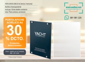 - Soportes y expositores: Los soportes de acrílico son útiles para exhibir folletos, catálogos, tarjetas de presentación y otros materiales promocionales. Los expositores de acrílico permiten presentar productos de forma ordenada y atractiva, facilitando su acceso para los clientes.