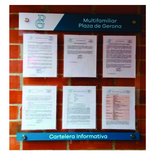 La base acrílica de 5 mm le brinda solidez y presencia, mientras que los bolsillos individuales permiten intercambiar fácilmente el contenido sin necesidad de desmontar el panel. Gracias a la distribución con separaciones precisas, el resultado visual es limpio, moderno y muy visible.