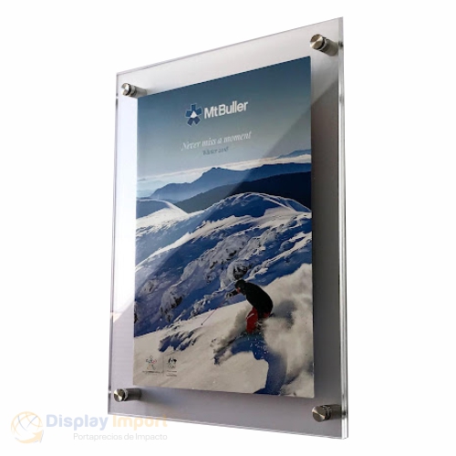El porta afiche acrílico para pared está diseñado para brindar una presentación elegante y duradera en espacios comerciales, institucionales o corporativos. Fabricado con dos láminas de acrílico transparente de 3 mm, este modelo protege el contenido con alta resistencia y claridad visual.