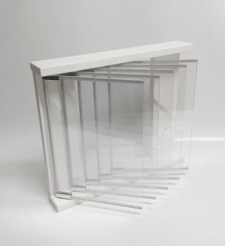 Diseñado con una base de madera pino de 18 mm, tratada con laca brillante para un acabado profesional y decorativo. Incorpora seis porta hojas en formato A4 fabricados en acrílico transparente de alta calidad, que permiten una visualización clara de cada documento.